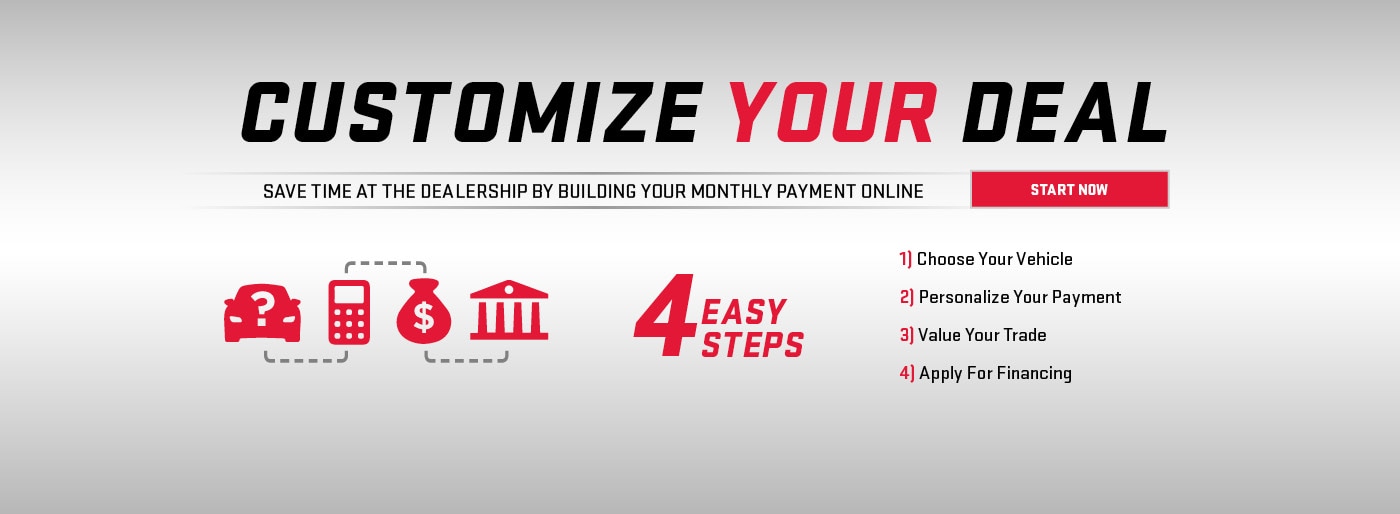 Get a complete picture of all costs and your monthly payment. Use the Customize Your Deal tool to: