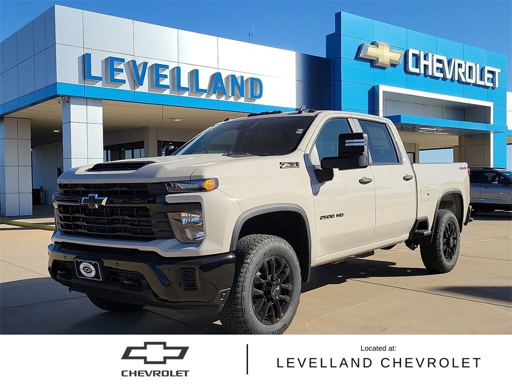 Price includes: $1000 - Customer Cash. Exp. 11/03/2025 This 2026 Chevrolet Silverado 2500HD Custom in White Sands comes with the following features: Duramax 6.6L V8 Turbodiesel 10-Speed Automatic 4WD 10-Speed Automatic, 4WD, and Black Cloth Custom Blackout Package (Black Tailgate Lettering (LPO) and Wheels: 20 High Gloss Black Painted), Custom Convenience Package (10-Way Power Driver Seat Adjuster w/Lumbar, 120-Volt Bed Mounted Power Outlet, 120-Volt Interior Power Outlet, Dual Rear USB Ports (Charge Only), Electric Rear-Window Defogger, EZ Lift Power Lock & Release Tailgate, LED Cargo Area Lighting, Remote Vehicle Starter System, and Unauthorized Entry Theft-Deterrent System), Custom Value Package (Auto-Dimming Inside Rear-View Mirror and Heated & Auto-Dimming Vertical Trailering Mirrors), CX Safety Package (Lane Change Alert w/Side Blind Zone Alert, Rear Cross Traffic Alert, and Ultrasonic Front & Rear Park Assist), Preferred Equipment Group 1CX (170 Amp Alternator, 2-Speed Electronic Shift Transfer Case, 3.5 Diagonal Monochromatic Display DIC, Black Mirror Caps, Bluetooth® For Phone, Chevrolet Connected Access Capable, Color-Keyed Carpeting Floor Covering, Compass, Deep-Tinted Glass, Electronic Cruise Control w/Set & Resume Speed, Front Rubberized Vinyl Floor Mats, HD Rear Vision Camera, Heated Vertical Trailering Mirrors, Locking Tailgate, Manual Tailgate Function w/No EZ Lift, Manual Tilt-Wheel Steering Column, OnStar Services Capable, Power Door Locks, Power Front Windows w/Driver Express Up/Down, Power Front Windows w/Passenger Express Down, Power Rear Windows w/Express Down, Push Button Start, Rear 60/40 Folding Bench Seat (Folds Up), Rear Rubberized Vinyl Floor Mats, Remote Keyless Entry, SiriusXM w/360L Trial Subscription, Standard Tailgate, Wi-Fi Hotspot Capable, and Wireless Phone Projection), Suspension Package, Z71 Off-Road Package (Hill Descent Control and Off-Road Suspension), 10-Speed Automatic, 4WD, Black Cloth, 220 Amp Alternator, 3 Round Black Tubular Off-Road Assist Steps (LPO), 4-Wheel Disc Brakes, 5th Wheel & Gooseneck Trailer Wiring Provisions, 6 Speakers, 6-Speaker Audio System, 720 Cold-Cranking Amps Heavy-Duty Battery, ABS brakes, Air Conditioning, Alloy wheels, AM/FM radio: SiriusXM with 360L, Apple CarPlay/Android Auto, Auto High-beam Headlights, Brake assist, Cloth Seat Trim, Delay-off headlights, Driver door bin, Dual front impact airbags, Dual front side impact airbags, Durabed Pickup Bed, Electronic Stability Control, Emergency communication system: OnStar, Engine Block Heater, Exhaust Brake, Front 40/20/40 Split-Bench Seats w/Lockable Storage, Front anti-roll bar, Front Center Armrest w/Storage, Front License Plate Kit, Front reading lights, Front wheel independent suspension, Fully automatic headlights, Heated door mirrors, Illuminated entry, LED Smoked Amber Roof Marker Lamps, Low tire pressure warning, Multi-Flex Tailgate, Occupant sensing airbag, Outside temperature display, Overhead airbag, Overhead console, Panic alarm, Passenger door bin, Passenger vanity mirror, Power door mirrors, Power steering, Power windows, Premium audio system: Chevrolet Infotainment 3, Radio: Chevrolet Infotainment 3 System, Rear reading lights, Rear step bumper, Remote keyless entry, Speed control, Split folding rear seat, Tachometer, Tilt steering wheel, Traction control, Trip computer, Turn signal indicator mirrors, Variably intermittent wipers, Voltmeter, Wheels: 20 10-Spoke Machined Aluminum, and Winter Grille Cover.