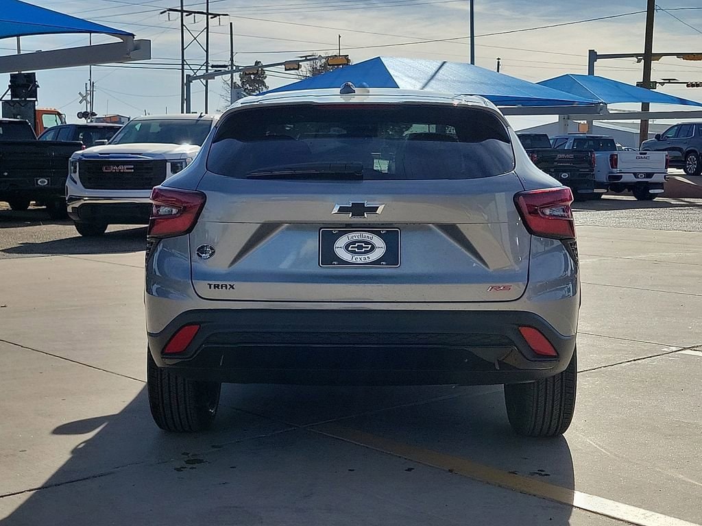 This 2026 Chevrolet Trax 1RS in Sterling Gray Metallic comes with the following features: ECOTEC 1.2L Turbo 6-Speed Automatic FWD Driver Confidence Package (Lane Change Alert with Side Blind Zone Alert, Rear Cross Traffic Alert, and Rear Park Assist), License Plate Front Mounting Package, Preferred Equipment Group 1RS, Sunroof Package (Power Sliding Glass Sunroof with Manual Shade), 2-Way Adjustable Front Head Restraints, 3.50 Final Drive Axle Ratio, 4 Speakers, 4-Speaker Audio System Feature, 4-Way Manual Front Passenger Seat Adjuster, 4-Wheel Disc Brakes, 6-Way Manual Driver Seat Adjuster, ABS brakes, Air Conditioning, Alloy wheels, AM/FM radio: SiriusXM, Auto High-beam Headlights, Brake assist, Bumpers: body-color, Cloth Seat Trim, Compass, Delay-off headlights, Driver door bin, Driver vanity mirror, Dual front impact airbags, Dual front side impact airbags, Electronic Stability Control, Emergency communication system: OnStar One Essentials, Exterior Parking Camera Rear, Front anti-roll bar, Front Bucket Seats, Front Center Armrest, Front reading lights, Front wheel independent suspension, Fully automatic headlights, Heated door mirrors, Heated Driver and Front Passenger Seats, Heated front seats, Heated steering wheel, Illuminated entry, Leather steering wheel, Low tire pressure warning, Occupant sensing airbag, Outside temperature display, Overhead airbag, Overhead console, Panic alarm, Passenger door bin, Passenger vanity mirror, Power door mirrors, Power steering, Power windows, Premium audio system: Chevrolet Infotainment 3, Radio data system, Radio: Chevrolet Infotainment 3 System with AM/FM, Rear window defroster, Rear window wiper, Remote keyless entry, Security system, SiriusXM Trial Subscription, Speed control, Split folding rear seat, Spoiler, Sport steering wheel, Steering wheel mounted audio controls, Tachometer, Telescoping steering wheel, Tilt steering wheel, Traction control, Trip computer, Variably intermittent wipers, Wheels: 18 Black-Painted Machined Aluminum, and Wireless Apple CarPlay/Wireless Android Auto.