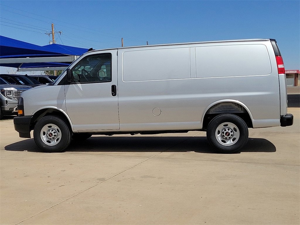 This 2025 GMC Savana 2500 Work Van in Quicksilver Metallic comes with the following features: 6.6L V8 8-Speed Automatic with Overdrive RWD Driver Convenience Package (Cruise Control and Tilt Steering Wheel), Preferred Equipment Group 1WT, 150 Amp Alternator, 16 x 6.5 Steel Wheels, 2 Speakers, 3.42 Rear Axle Ratio, 4-Wheel Disc Brakes, ABS brakes, Air Conditioning, AM/FM radio, AM/FM Stereo w/MP3 Player, Delay-off headlights, Driver & Front Passenger High-Back Bucket Seats, Driver & Front Passenger Vinyl Visors, Driver door bin, Driver's Seat Mounted Armrest, Dual front impact airbags, Dual front side impact airbags, Electronic Stability Control, Front anti-roll bar, Front Bucket Seats, Front Reclining High-Back Bucket Seats, Front wheel independent suspension, Full-Length Black Rubberized-Vinyl Floor Covering, Fully automatic headlights, Heated door mirrors, Low tire pressure warning, Occupant sensing airbag, Overhead airbag, Passenger cancellable airbag, Passenger door bin, Passenger seat mounted armrest, Power door mirrors, Power steering, Power windows, Single-Zone Manual Air Conditioning, Sliding Passenger-Side Door, Tachometer, Traction control, Trip computer, Variably intermittent wipers, Vinyl Seat Trim, and Voltmeter.