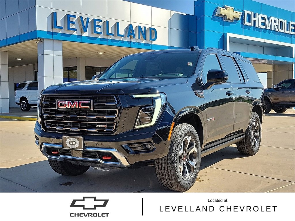 This 2025 GMC Yukon AT4 Ultimate in Onyx Black comes with the following features: EcoTec3 6.2L V8 10-Speed Automatic with Overdrive 4WD 4WD Advanced Security Package (Glass Breakage Sensor, Theft-Deterrent Alarm System, Vehicle Inclination Sensor, and Vehicle Interior Movement Sensor), Advanced Technology Package (3 Years of OnStar Digital Services/Safety Services, Driver Attention Assist, Inside Rearview Auto-Dimming Rear Camera Mirror, Rear Seat Media System, and Super Cruise), License Plate Front Mounting Package, Max Trailering Package (Blind Zone Steering Assist w/Trailering, Extra Capacity Cooling System, Hitch View, Integrated Trailer Brake Controller, and Smart Trailer Integration Indicator), Preferred Equipment Group 4SG (15 Diagonal Multi-Color Head-Up Display, 4-Spoke Leather-Wrapped Steering Wheel, 4-Way Power Driver Lumbar Seat Adjuster, 4-Way Power Front Passenger Lumbar Seat Adjuster, 8 Diagonal Rear Touchscreen Climate Control, AutoSense Hands-Free Power Liftgate, Black Roof-Mounted Luggage Rack Side Rails, Body-Color Door Handles, Bose 18-Speaker Surround w/CenterPoint, Bright Front & Rear Door Sill Plates, Driver 2-Way Power Upper Shoulder, Driver Power Massage Seat, Dual Exhaust System, Dual-Pane Panoramic Power Sunroof, Front High-Approach Angle Fascia, Front Passenger 2-Way Power Upper Shoulder, Front Passenger Power Massage Seat, Heavy-Duty Air Filter, Hill Descent Control, Perforated Heated & Ventilated Dr & Frt Pass Seats, Power Release 2nd Row Bucket Seats, Power Tilt & Telescopic Steering Column, Power-Retractable Assist Steps, Red Horizontal-Mounted Recovery Hooks, Sport Pedal Cover Kit (LPO), and Wheel Locks (Set of 4) (LPO)), Premium Capability Package w/Active Response 4WD (Air Ride Adaptive Suspension and Electronic Limited Slip Differential (eLSD)), 4WD, 18 Speakers, 3.23 Rear Axle Ratio, 3rd row seats: split-bench, 4-Wheel Disc Brakes, ABS brakes, Adaptive suspension, Air Conditioning, Alloy wheels, AM/FM radio: SiriusXM with 360L, Apple CarPlay/Android Auto, Audio memory, Auto High-beam Headlights, Auto-dimming door mirrors, Auto-dimming Rear-View mirror, Auto-leveling suspension, Automatic temperature control, Brake assist, Bumpers: body-color, Compass, Delay-off headlights, Driver door bin, Driver vanity mirror, Dual front impact airbags, Dual front side impact airbags, Electronic Stability Control, Emergency communication system: OnStar and GMC connected services capable, Exterior Parking Camera Rear, Four wheel independent suspension, Front anti-roll bar, Front Bucket Seats, Front Center Armrest, Front dual zone A/C, Front fog lights, Front reading lights, Full Grain Leather Seats, Fully automatic headlights, Garage door transmitter, Headphones, Heads-Up Display, Heated door mirrors, Heated Driver & Front Passenger Seats, Heated front seats, Heated rear seats, Heated steering wheel, Illuminated entry, Leather steering wheel, Low tire pressure warning, Magnetic Ride Control Suspension, Memory seat, Navigation system: GMC Connected Navigation, Night Vision, Occupant sensing airbag, Outside temperature display, Overhead airbag, Overhead console, Panic alarm, Passenger door bin, Passenger vanity mirror, Power door mirrors, Power driver seat, Power Liftgate, Power moonroof, Power passenger seat, Power steering, Power windows, Radio: 16.8 Diagonal Premium GMC Infotainment Sys, Rain sensing wipers, Rear air conditioning, Rear anti-roll bar, Rear audio controls, Rear reading lights, Rear window defroster, Rear window wiper, Remote keyless entry, Security system, SiriusXM w/360L, Speed control, Speed-sensing steering, Split folding rear seat, Spoiler, Steering wheel memory, Steering wheel mounted audio controls, Tachometer, Telescoping steering wheel, Tilt steering wheel, Traction control, Trip computer, Turn signal indicator mirrors, Variably intermittent wipers, Ventilated front seats, Voltmeter, and Wheels: 20 x 9 Machined & Painted.