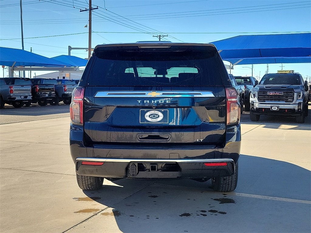 This 2023 Chevrolet Tahoe LT EcoTec3 5.3L V8 10-Speed Automatic with Overdrive 4WD in Midnight Blue Metallic comes with the following features: 4WD and Black Leather Preferred Equipment Group 1LT (1st & 2nd Row Color-Keyed Carpeted Floor Mats, Auto-Dimming Inside Rear-View Mirror, Bose 9-Speaker Stereo Audio System Feature, Bright Front & Rear Door Sill Plates, Color-Keyed Carpeting Floor Covering, Driver & Front Outboard Passenger Airbags, Enhanced Driver Information Center, Floor Console w/Storage Area, Hands-Free Rear Power Programmable Liftgate, Infotainment Display, LED Daytime Running Lamps, Memory Settings for Driver, Remote Start, SiriusXM Radio w/360L, Universal Home Remote, Wireless Charging, and Wrapped Steering Wheel), 4WD, Black Leather, 10-Way Power Driver & Passenger Seat Adjusters, 2nd Row Manual Bucket Seats, 3.23 Rear Axle Ratio, 3rd row seats: split-bench, 4-Wheel Disc Brakes, 9 Speakers, ABS brakes, Air Conditioning, Alloy wheels, AM/FM radio: SiriusXM with 360L, Apple CarPlay/Android Auto, Auto High-beam Headlights, Auto-dimming Rear-View mirror, Automatic temperature control, Brake assist, Bumpers: body-color, Compass, Delay-off headlights, Deleted 3 Years of Remote Access, Driver door bin, Driver vanity mirror, Dual front impact airbags, Dual front side impact airbags, Electronic Stability Control, Emergency communication system: OnStar and Chevrolet connected services capable, Four wheel independent suspension, Front anti-roll bar, Front Bucket Seats, Front Center Armrest, Front dual zone A/C, Front High-Back Reclining Bucket Seats, Front reading lights, Fully automatic headlights, Garage door transmitter, Heated door mirrors, Heated Driver & Front Passenger Seats, Heated front seats, Illuminated entry, Leather-Appointed Seat Trim, Low tire pressure warning, Memory seat, Navigation System, Occupant sensing airbag, Outside temperature display, Overhead airbag, Overhead console, Panic alarm, Passenger door bin, Passenger vanity mirror, Power door mirrors, Power driver seat, Power Liftgate, Power passenger seat, Power steering, Power windows, Premium audio system: Chevrolet Infotainment 3 Premium, Premium Smooth Ride Suspension, Radio: Chevrolet Infotainment 3 Premium System, Rain sensing wipers, Rear air conditioning, Rear anti-roll bar, Rear reading lights, Rear seat center armrest, Rear window defroster, Rear window wiper, Remote keyless entry, Roof rack: rails only, Security system, Speed control, Speed-sensing steering, Split folding rear seat, Spoiler, Steering wheel mounted audio controls, Tachometer, Telescoping steering wheel, Tilt steering wheel, Traction control, Trip computer, Variably intermittent wipers, Voltmeter, and Wheels: 18 x 8.5 Bright Silver Painted Aluminum.