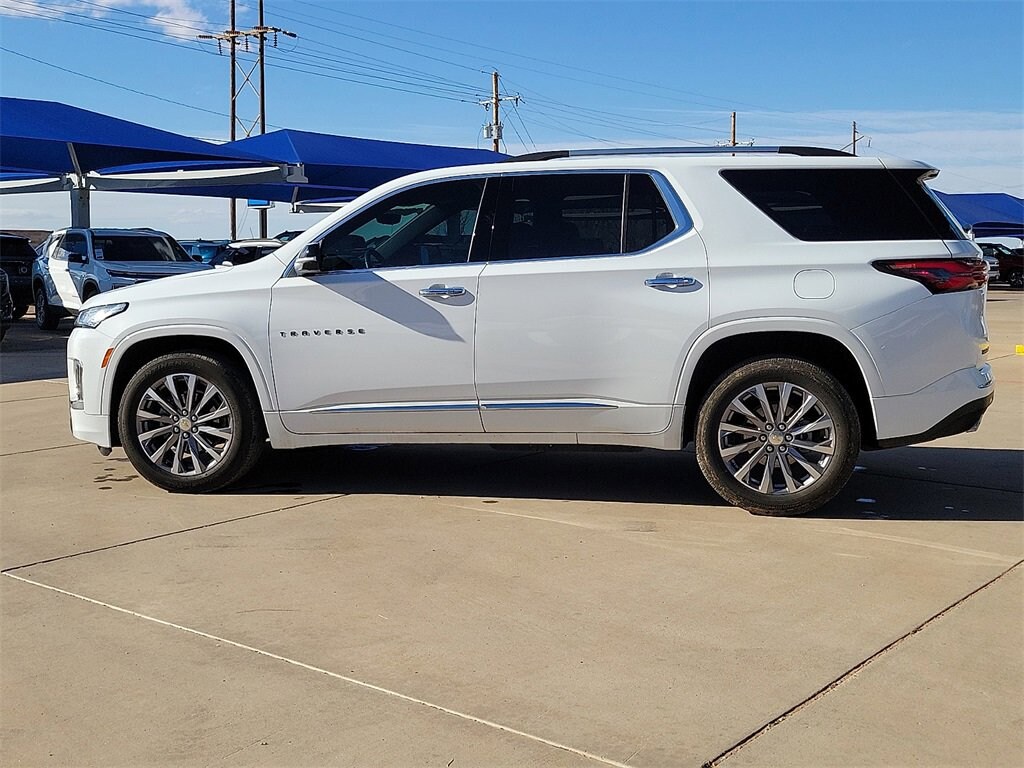 Recent Arrival! This 2023 Chevrolet Traverse Premier 3.6L V6 SIDI VVT 9-Speed Automatic FWD in Summit White comes with the following features: Blackout Package (LPO) (Black Bowtie, Black Grille (LPO), Black Mirror Caps (LPO), Black Nameplate Kit (LPO), and Black Rear License Plate Applique (LPO)), Front License Plate Bracket Mounting Package, Preferred Equipment Group 1LZ (Heated 2nd Row Outboard Position Seats, Heated Driver & Front Passenger Seats, and Ventilated Driver & Front Passenger Seats), 10 Speakers, 3.49 Axle Ratio, 3rd row seats: split-bench, 4-Wheel Disc Brakes, 6-Way Power Front Passenger Seat, 8-Way Power Driver Seat Adjuster, ABS brakes, Air Conditioning, Alloy wheels, AM/FM radio: SiriusXM with 360L, Apple CarPlay/Android Auto, Auto High-beam Headlights, Auto-dimming door mirrors, Auto-dimming Rear-View mirror, Automatic temperature control, Bose Premium 10-Speaker Audio System Feature, Brake assist, Bumpers: body-color, Compass, Delay-off headlights, Driver door bin, Driver vanity mirror, Dual front impact airbags, Dual front side impact airbags, Electronic Stability Control, Emergency communication system, Exterior Parking Camera Rear, Four wheel independent suspension, Front anti-roll bar, Front Bucket Seats, Front Center Armrest, Front dual zone A/C, Front Passenger 2-Way Power Lumbar, Front reading lights, Fully automatic headlights, Garage door transmitter, Heated door mirrors, Heated front seats, Heated rear seats, Heated steering wheel, Illuminated entry, Leather steering wheel, Low tire pressure warning, Memory seat, Navigation System, Not Equipped w/Rear Park Assist (060), Occupant sensing airbag, Outside temperature display, Overhead airbag, Overhead console, Panic alarm, Passenger door bin, Passenger vanity mirror, Perforated Leather-Appointed Seat Trim, Power door mirrors, Power Driver Lumbar Control, Power driver seat, Power Liftgate, Power passenger seat, Power steering, Power windows, Premium audio system: Chevrolet Infotainment 3 Plus, Radio data system, Radio: Chevrolet Infotainment 3 Plus System w/Navi, Rear air conditioning, Rear anti-roll bar, Rear reading lights, Rear window defroster, Rear window wiper, Remote keyless entry, Security system, SiriusXM w/360L, Speed control, Speed-sensing steering, Spoiler, Steering wheel memory, Steering wheel mounted audio controls, Tachometer, Telescoping steering wheel, Tilt steering wheel, Traction control, Trip computer, Turn signal indicator mirrors, Variably intermittent wipers, Ventilated front seats, Voltmeter, and Wheels: 20 Metallic Machined-Face Aluminum.Odometer is 26203 miles below market average!18/27 City/Highway MPG