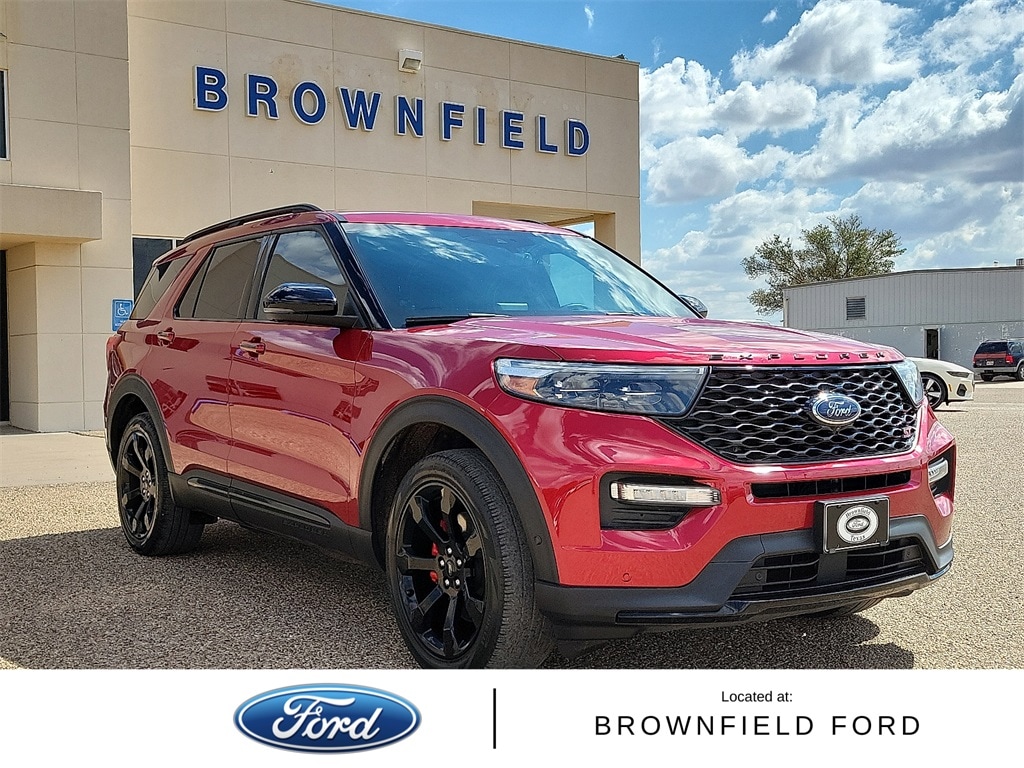 Recent Arrival! This 2022 Ford Explorer ST 3.0L EcoBoost V6 10-Speed Automatic 4WD in Rapid Red Metallic Tinted Clearcoat comes with the following features: 4WD Equipment Group 401A, Ford Co-Pilot360 Assist+ (Evasive Steering Assist, Intelligent Adaptive Cruise Control, Speed Sign Recognition, and Voice-Activated Touchscreen Navigation System), Premium Technology Package (10.1" LCD Capacitive Portrait Touchscreen, 1st Row Heated Seats, 2 Additional Speakers, and Leather Htd/Ventilated Sport Captain's Chairs), ST High Package (110V/150W AC Power Outlet, 360-Degree Camera w/Split View, Auto-Dimming Rearview Mirror (Interior), FordPass Connect, Front Parking Sensors, Front Rain-Sensing Wipers, Hands-Free Foot-Activated Liftgate, Memory Driver's Seat, Power Tilt/Telescoping Steering Column, Radio: B&O Sound System by Bang & Olufsen, Reverse Brake Assist, Second Row Heated Seats, Sideview Mirrors w/Gloss Black Caps, SYNC 3 Communications & Entertainment System, Third Row PowerFold (Folds Flat), Universal Garage Door Opener (UGDO), and Wireless Charging Pad), ST Street Pack (Performance Front & Rear Brakes and Wheels: 21" Aluminum), 4WD, 20" Machined Aluminum w/Painted Pockets Wheels, 2nd Row 35/30/35 Bench w/E-Z Entry & Armrest, 3.58 Non-Limited-Slip Rear Axle Ratio, 3rd row seats: bench, 4-Wheel Disc Brakes, 6 Speakers, ABS brakes, Air Conditioning, Alloy wheels, AM/FM radio: SiriusXM, AM/FM Stereo, Auto High-beam Headlights, Automatic temperature control, Black Roof-Rack Side Rails, Brake assist, Bumpers: body-color, Compass, Delay-off headlights, Driver door bin, Driver vanity mirror, Dual front impact airbags, Dual front side impact airbags, Electronic Stability Control, Emergency communication system: SYNC 3 911 Assist, Exterior Parking Camera Rear, Four wheel independent suspension, Front anti-roll bar, Front Bucket Seats, Front Center Armrest, Front dual zone A/C, Front fog lights, Front reading lights, Fully automatic headlights, Heated door mirrors, Heated front seats, Heated steering wheel, Illuminated entry, Knee airbag, Leather steering wheel, Low tire pressure warning, Memory seat, Occupant sensing airbag, Outside temperature display, Overhead airbag, Overhead console, Panic alarm, Passenger door bin, Passenger vanity mirror, Power door mirrors, Power driver seat, Power Liftgate, Power passenger seat, Power steering, Power windows, Rear air conditioning, Rear anti-roll bar, Rear reading lights, Rear window defroster, Rear window wiper, Remote keyless entry, Security system, SelectShift Capability w/Paddle Shifters, Speed control, Speed-sensing steering, Speed-Sensitive Wipers, Split folding rear seat, Spoiler, Sport steering wheel, Steering wheel mounted audio controls, SYNC 3/Apple CarPlay/Android Auto, Tachometer, Telescoping steering wheel, Tilt steering wheel, Traction control, Trip computer, Twin Panel Moonroof, Variably intermittent wipers, and Ventilated front seats.