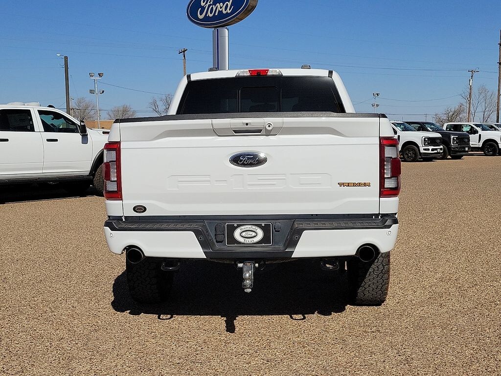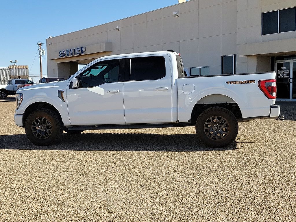 This 2022 Ford F-150 Tremor 3.5L V6 EcoBoost 10-Speed Automatic 4WD in Oxford White comes with the following features: 4WD Equipment Group 402A High (12" Productivity Screen in Instrument Cluster, Advanced Security Pack, Ambient Lighting, Body-Color Door Handles w/Body-Color Bezel, Carpeted Floor Mats w/Tremor Logo, Electronic Locking w/3.73 Axle Ratio, Onboard 400W Outlet, Power Glass Sideview Mirr w/Body-Color Skull Caps, Radio: B&O Sound System by Bang & Olufsen, SYNC 4 w/Enhanced Voice Recognition, Trail Control, Unique Tremor Leather-Trimmed Bucket Seats, and Wireless Charging Pad), Ford Co-Pilot360 Assist 2.0 (DISC) (Connected Built-In Navigation (DISC)), GVWR: 7,050 lbs Payload Package, Tow Technology Package (360 Degree Camera and Integrated Trailer Brake Controller), 4WD, 4-Wheel Disc Brakes, 6 Speakers, ABS brakes, Air Conditioning, Alloy wheels, AM/FM radio: SiriusXM with 360L, Auto High Beam, Auto High-beam Headlights, Auto Start-Stop Removal, Brake assist, Bumpers: body-color, Class IV Trailer Hitch Receiver, Compass, Delay-off headlights, Driver door bin, Dual front impact airbags, Dual front side impact airbags, Electronic Stability Control, Emergency communication system: SYNC 4 911 Assist, Exterior Parking Camera Rear, Front anti-roll bar, Front Bucket Seats, Front Center Armrest, Front fog lights, Front License Plate Bracket, Front reading lights, Front wheel independent suspension, Fully automatic headlights, Heated door mirrors, Illuminated entry, Interior Work Surface, Lane-Keeping System, Low tire pressure warning, Navigation system: Connected Navigation, Occupant sensing airbag, Outside temperature display, Overhead airbag, Overhead console, Panic alarm, Passenger door bin, Passenger vanity mirror, Power door mirrors, Power steering, Power windows, Pre-Collision Assist w/Automatic Emergency Braking, Radio data system, Radio: AM/FM SiriusXM w/360L, Radio: B&O Unleashed Sound System by Bang & Olufsen, Rear reading lights, Rear step bumper, Rear window defroster, Rear-View Camera, Remote keyless entry, Security system, Speed control, Speed-sensing steering, Split folding rear seat, Steering wheel mounted audio controls, Tachometer, Telescoping steering wheel, Tilt steering wheel, Traction control, Trip computer, Unique Sport Cloth 40/Console/40 Front Seat, Variably intermittent wipers, Voltmeter, and Wheels: 18" Alloy w/Dark Matte Finish.
