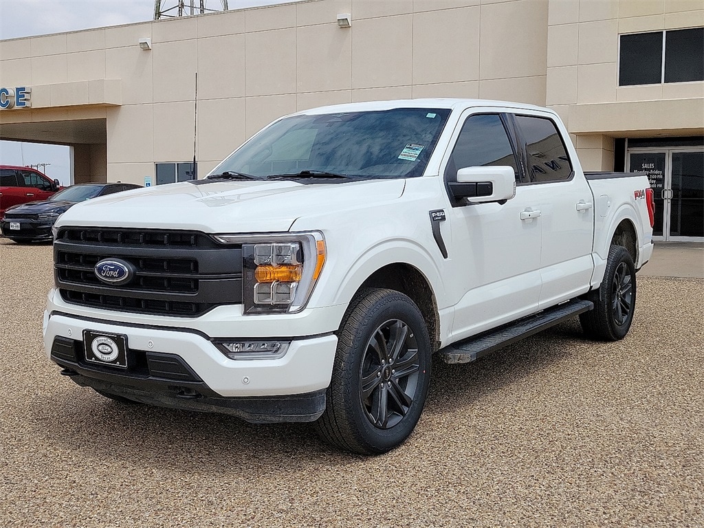 This 2023 Ford F-150 Lariat 3.5L V6 EcoBoost 10-Speed Automatic 4WD in Star White Metallic Tri-Coat comes with the following features: 4WD Equipment Group 501A Standard, Ford Co-Pilot360 Assist 2.0 (Connected Built-In Navigation, Evasive Steering Assist, Intelligent Adaptive Cruise Control w/Stop & Go, Intersection Assist, and Speed Sign Recognition), FX4 Off-Road Package, Lariat Sport Appearance Package (Accent-Color Angular Step Bars, Body-Color Front & Rear Bumpers, Box Side Decals, Chrome Single-Tip Exhaust, and Dark 2-Bar & 1 Minor Bar Style Grille), Trailer Tow Package (Class IV Trailer Hitch Receiver, Integrated Trailer Brake Controller, and Pro Trailer Backup Assist & Pro Trailer Hitch Assist), 4WD, 3.31 Axle Ratio, 360 Degree Camera, 4-Wheel Disc Brakes, 8 Speakers, ABS brakes, Adjustable pedals, Air Conditioning, Alloy wheels, AM/FM radio: SiriusXM with 360L, Auto High-beam Headlights, Auto Start-Stop Removal (DISC), Auto-dimming door mirrors, Auto-dimming Rear-View mirror, Automatic temperature control, Brake assist, Bumpers: chrome, Center High-Mounted Stop Lamp CHMSL Camera Removal, Chrome wheels, Compass, Delay-off headlights, Driver door bin, Driver vanity mirror, Dual front impact airbags, Dual front side impact airbags, Electronic Locking w/3.55 Axle Ratio, Electronic Stability Control, Emergency communication system: SYNC 4 911 Assist, Extended Range 36 Gallon Fuel Tank, Exterior Parking Camera Rear, Front anti-roll bar, Front Bucket Seats, Front Center Armrest, Front dual zone A/C, Front fog lights, Front reading lights, Front wheel independent suspension, Fully automatic headlights, Garage door transmitter, Heated door mirrors, Heated front seats, Heated steering wheel, Illuminated entry, Inclination/Intrusion Sensor Removal, Interior Work Surface, Leather-Trimmed Bucket Seats, LED Sideview Mirror Spotlights, Low tire pressure warning, Memory seat, Occupant sensing airbag, Outside temperature display, Overhead airbag, Overhead console, Panic alarm, Passenger door bin, Passenger vanity mirror, Pedal memory, Power door mirrors, Power driver seat, Power passenger seat, Power steering, Power windows, Radio data system, Radio: B&O Sound System by Bang & Olufsen, Rear reading lights, Rear seat center armrest, Rear step bumper, Rear window defroster, Remote keyless entry, Security system, Speed control, Speed-sensing steering, Split folding rear seat, Steering Wheel Heat Removal (DISC), Steering wheel mounted audio controls, SYNC 4 w/Enhanced Voice Recognition, Tachometer, Telescoping steering wheel, Tilt steering wheel, Traction control, Tray Style Floor Liner (47W), Trip computer, Turn signal indicator mirrors, Variably intermittent wipers, Ventilated front seats, Voltmeter, Wheels: 18" Chrome-Like PVD, and Wheels: 20" 6-Spoke Dark Alloy Painted Aluminum.