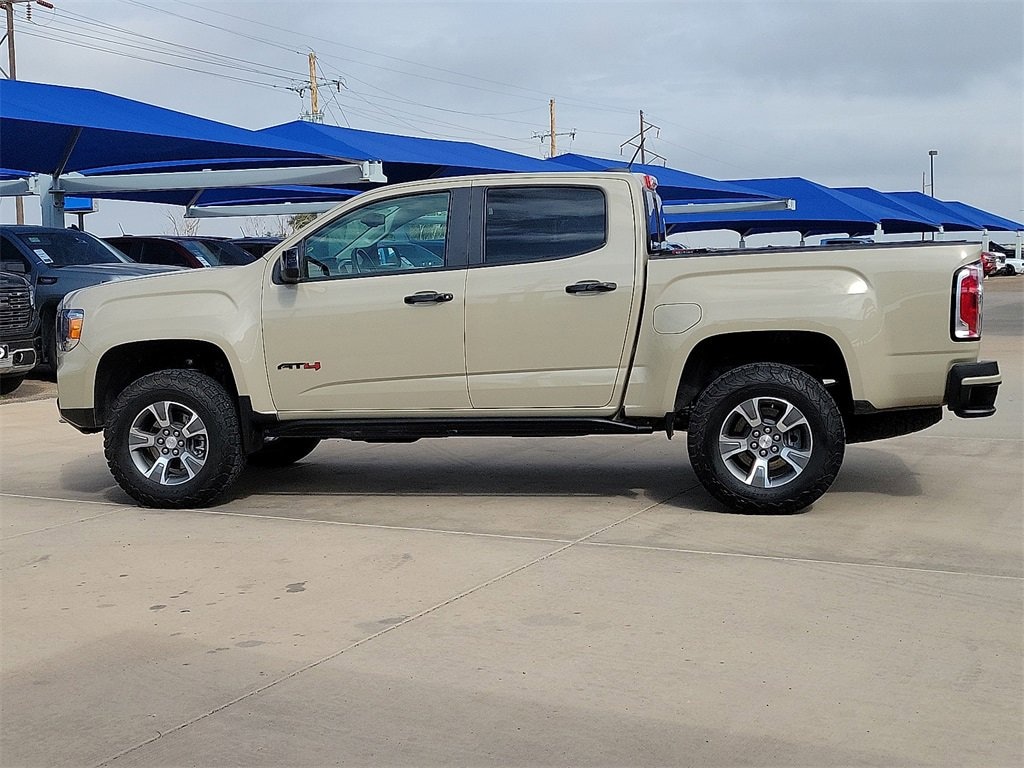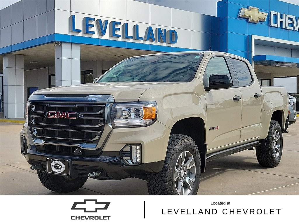 This 2021 GMC Canyon AT4 w/Cloth V6 8-Speed Automatic 4WD in Desert Sand Metallic comes with the following features: 4WD AT4 Off-Road Performance Edition Package (1st & 2nd Rows All-Weather Floor Liner (LPO), Black AT4 Badges (LPO), Black Spray-On Bedliner w/GMC Logo, GMC Black Chrome Exhaust Tip (LPO), Off-Road Rocker Protection (LPO), Suspension Leveling Kit (LPO), and Wheels: 17 x 8 Gloss-Black Aluminum), Driver Alert Package (Forward Collision Alert, Lane Departure Warning System, and Ultrasonic Rear Parking Assist), Preferred Equipment Group 4SB (Hitch Guidance and Tow/Haul Mode), Trailering Package, 4WD, 3.42 Rear Axle Ratio, 4-Wheel Disc Brakes, 6 Speakers, 6-Speaker Audio System Feature, ABS brakes, Air Conditioning, Alloy wheels, AM/FM radio: SiriusXM, Apple CarPlay/Android Auto, Auto-dimming Rear-View mirror, Automatic temperature control, Bumpers: body-color, Cloth Seat Trim, Compass, Delay-off headlights, Driver 6-Way Power Seat Adjuster, Driver door bin, Driver Instrument Information Enhanced Display, Driver vanity mirror, Dual front impact airbags, Dual front side impact airbags, Electronic Stability Control, Exterior Parking Camera Rear, Front & Rear Splash Guards, Front anti-roll bar, Front Bucket Seats, Front Center Armrest, Front fog lights, Front License Plate Kit, Front reading lights, Front wheel independent suspension, Fully automatic headlights, HD Radio, Heated door mirrors, Heated Driver & Front Passenger Seats, Heated front seats, Heated Steering Wheel, Illuminated entry, Integrated Trailer Brake Controller, Low tire pressure warning, Occupant sensing airbag, Outside temperature display, Overhead airbag, Overhead console, Panic alarm, Passenger door bin, Passenger vanity mirror, Power door mirrors, Power Driver Lumbar Control Seat Adjuster, Power driver seat, Power steering, Power windows, Premium audio system: GMC Infotainment System, Radio data system, Radio: AM/FM w/8 Diagonal Color Touch-Screen, Rear reading lights, Rear seat center armrest, Rear step bumper, Rear window defroster, Remote keyless entry, Security system, SiriusXM Radio, Speed control, Speed-sensing steering, Steering wheel mounted audio controls, Tachometer, Telescoping steering wheel, Tilt steering wheel, Traction control, Trip computer, Variably intermittent wipers, and Wheels: 17 x 8 Dark Argent Metallic.