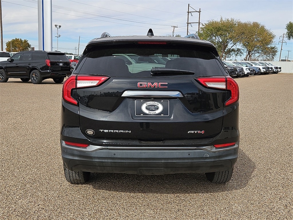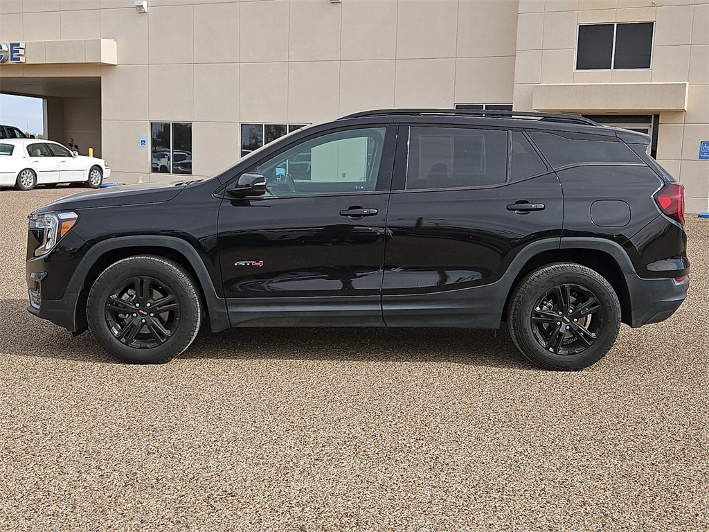 This 2022 GMC Terrain AT4 1.5L DOHC 9-Speed Automatic AWD in Ebony Twilight Metallic comes with the following features: AWD GMC Pro Safety Plus (Adaptive Cruise Control, Lane Change Alert w/Side Blind Zone Alert, Rear Cross-Traffic Alert, Rear Park Assist, and Safety Alert Seat), Infotainment Package II (Premium 7-Speaker Bose Sound System w/Amplifier, Radio: GMC Infotainment Audio System w/Navigation, and SiriusXM Radio), License Plate Front Mounting Package, Preferred Equipment Group 4SC, AWD, 2 USB Data Ports, 2 USB Data Ports w/SD Card Reader, 3.47 Axle Ratio, 4-Wheel Disc Brakes, 6 Speakers, 6-Speaker Audio System Feature, 6-Way Power Front Passenger Seat, 8-Way Power Driver Seat Adjuster, ABS brakes, Air Conditioning, Alloy wheels, AM/FM radio: SiriusXM, Auto High-beam Headlights, Auto-dimming Rear-View mirror, Automatic temperature control, Bluetooth® For Phone, Brake assist, Bumpers: body-color, Compass, Delay-off headlights, Driver & Front Passenger Heated Seats, Driver door bin, Driver vanity mirror, Dual front impact airbags, Dual front side impact airbags, Electronic Stability Control, Emergency communication system: OnStar Guidance, Four wheel independent suspension, Front anti-roll bar, Front Bucket Seats, Front Center Armrest, Front dual zone A/C, Front fog lights, Front Passenger 2-Way Power Lumbar, Front reading lights, Fully automatic headlights, Garage door transmitter, Heated door mirrors, Heated front seats, Heated steering wheel, Illuminated entry, Lane Departure Warning System, Low tire pressure warning, Memory seat, Not Equipped w/Driver & Fr Pass Heated Seats, Occupant sensing airbag, Outside temperature display, Overhead airbag, Overhead console, Panic alarm, Passenger door bin, Passenger vanity mirror, Perforated Leather-Appointed Seat Trim w/AT4 Logo, Power door mirrors, Power Driver Lumbar Control, Power driver seat, Power Liftgate, Power passenger seat, Power steering, Power windows, Radio data system, Radio: GMC Infotainment Audio System w/8" Display, Rear anti-roll bar, Rear seat center armrest, Rear window defroster, Rear window wiper, Remote keyless entry, Roof rack: rails only, Security system, Skyscape Power Sunroof w/Power Sunscreen, Speed control, Speed-sensing steering, Split folding rear seat, Spoiler, Steering wheel mounted audio controls, Tachometer, Telescoping steering wheel, Tilt steering wheel, Traction control, Trip computer, Turn signal indicator mirrors, Variably intermittent wipers, Wheels: 17" x 7" Gloss Black Aluminum, and Wireless Apple CarPlay/Wireless Android Auto.