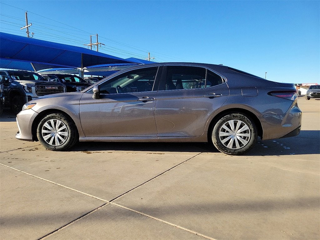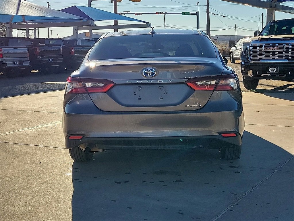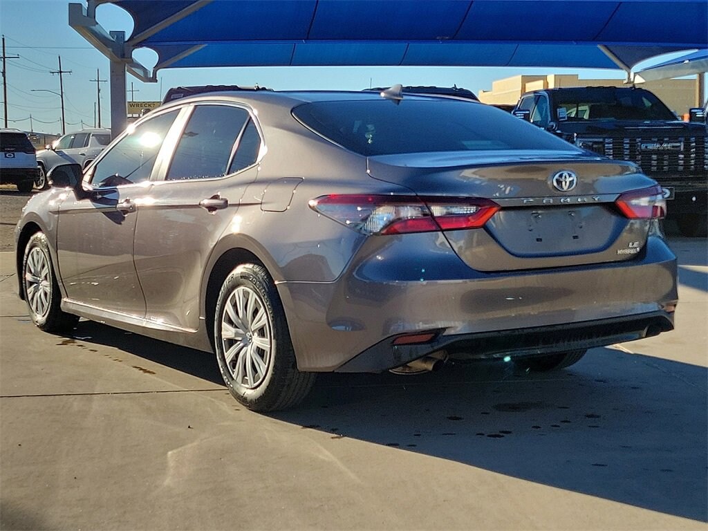 This 2022 Toyota Camry Hybrid LE 2.5L I4 DOHC 16V eCVT FWD in Silver comes with the following features: 2.5L I4 DOHC 16V 2.5L I4 DOHC 16V, 4-Wheel Disc Brakes, 6 Speakers, 6.5J x 16 Steel Wheels, ABS brakes, Air Conditioning, AM/FM radio: SiriusXM, Apple CarPlay/Android Auto, Auto High-beam Headlights, Automatic temperature control, Brake assist, Bumpers: body-color, Delay-off headlights, Driver door bin, Driver vanity mirror, Dual front impact airbags, Dual front side impact airbags, Electronic Stability Control, Emergency communication system: Safety Connect with 1-year trial, Exterior Parking Camera Rear, Fabric Seat Trim, Four wheel independent suspension, Front anti-roll bar, Front Bucket Seats, Front Center Armrest, Front dual zone A/C, Front reading lights, Fully automatic headlights, Illuminated entry, Knee airbag, Low tire pressure warning, Occupant sensing airbag, Outside temperature display, Overhead airbag, Overhead console, Panic alarm, Passenger door bin, Passenger vanity mirror, Power door mirrors, Power driver seat, Power steering, Power windows, Radio data system, Radio: AM/FM Audio System, Rear anti-roll bar, Rear seat center armrest, Rear side impact airbag, Rear window defroster, Remote keyless entry, Security system, Speed control, Speed-sensing steering, Split folding rear seat, Steering wheel mounted audio controls, Telescoping steering wheel, Tilt steering wheel, Traction control, Trip computer, and Variably intermittent wipers.