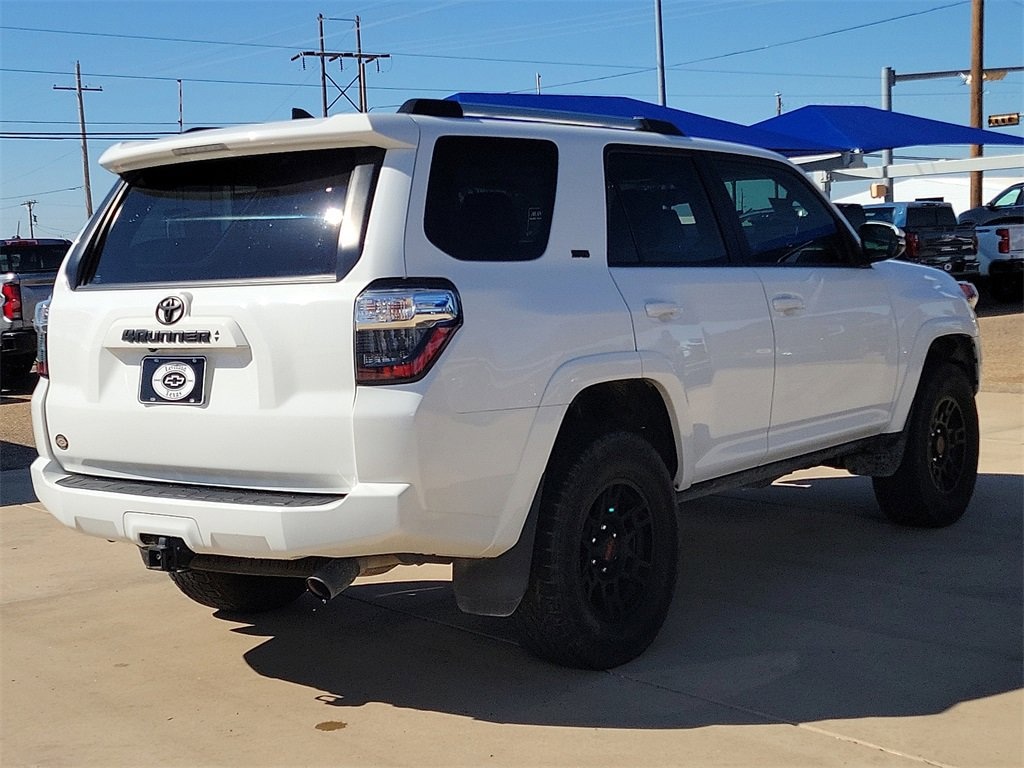 This 2023 Toyota 4Runner SR5 Premium 4.0L V6 DOHC 24V 5-Speed with ECT 4WD in White comes with the following features: 4WD and Black/Graphite w/SofTex Seat Trim 4WD, Black/Graphite w/SofTex Seat Trim, 17 6-Spoke Alloy Wheels, 3.727 Axle Ratio, 4-Wheel Disc Brakes, 8 Speakers, ABS brakes, Air Conditioning, Alloy wheels, AM/FM radio: SiriusXM, Anti-whiplash front head restraints, Apple CarPlay/Android Auto, Auto High-beam Headlights, Auto-dimming Rear-View mirror, Brake assist, Bumpers: body-color, Compass, Driver door bin, Driver vanity mirror, Dual front impact airbags, Dual front side impact airbags, Electronic Stability Control, Emergency communication system: Safety Connect (1-year trial), Exterior Parking Camera Rear, Front anti-roll bar, Front Bucket Seats, Front Center Armrest, Front fog lights, Front reading lights, Front wheel independent suspension, Garage Door Opener, Garage door transmitter: HomeLink, Heated door mirrors, Heated Front Bucket Seats, Heated front seats, Heated Outside Rear-View Mirrors, Illuminated entry, Knee airbag, Leather Shift Knob, Leather steering wheel, Low tire pressure warning, Navigation System, Occupant sensing airbag, Outside temperature display, Overhead airbag, Overhead console, Panic alarm, Passenger door bin, Passenger vanity mirror, Power door mirrors, Power driver seat, Power passenger seat, Power steering, Power windows, Radio: Premium Audio w/Dynamic Navigation, Rear anti-roll bar, Rear seat center armrest, Rear window defroster, Rear window wiper, Remote keyless entry, Security system, SofTex Seat Trim, Speed control, Speed-sensing steering, Split folding rear seat, Spoiler, Steering wheel mounted audio controls, Tachometer, Telescoping steering wheel, Tilt steering wheel, Traction control, Trip computer, Turn signal indicator mirrors, and Variably intermittent wipers.