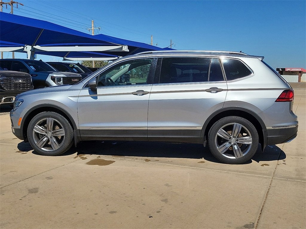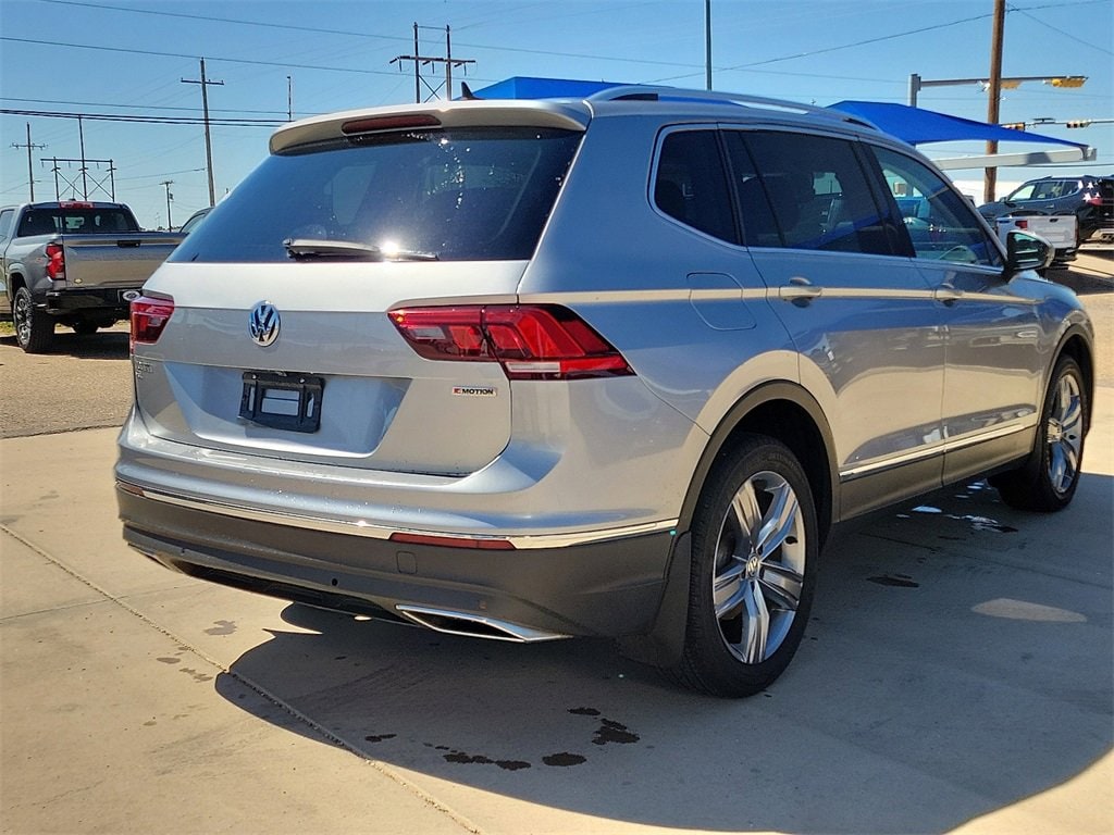 This 2019 Volkswagen Tiguan 2.0T SEL Premium 4Motion 2.0L TSI DOHC 8-Speed Automatic with Tiptronic AWD in Silver Metallic comes with the following features: AWD 3rd Row Seat Package, AWD, 3-Row Rubber Mats Kit (DISC), 3.33 Axle Ratio, 4-Wheel Disc Brakes, 4-Wheel Independent Suspension, 8 Speakers, ABS brakes, Active Blind Spot Monitor, Air Conditioning, Alloy wheels, AM/FM radio: SiriusXM, Auto High-beam Headlights, Auto-dimming Rear-View mirror, Automatic temperature control, Brake assist, Bumpers: body-color, Compass, Delay-off headlights, Driver door bin, Driver vanity mirror, Dual front impact airbags, Dual front side impact airbags, Electronic Stability Control, Emergency communication system: VW Car-Net services (capabilities require enrollment or subscription), Forward collision: FCW w/Autonomous Emergency Braking mitigation, Four wheel independent suspension, Frameless Auto-Dimming Rearview Mirror, Front anti-roll bar, Front Bucket Seats, Front Center Armrest, Front dual zone A/C, Front fog lights, Front reading lights, Fully automatic headlights, Heated door mirrors, Heated Front Comfort Sport Seats, Heated front seats, Heated steering wheel, Heavy Duty Trunk Liner w/VW CarGo Blocks, Illuminated entry, Leather Shift Knob, Low tire pressure warning, Luggage Net, Memory seat, Navigation System, Occupant sensing airbag, Outside temperature display, Overhead airbag, Overhead console, Panic alarm, Passenger door bin, Passenger vanity mirror, Power door mirrors, Power driver seat, Power Liftgate, Power moonroof, Power steering, Power windows, Radio data system, Radio: Discover Media AM/FM/HD, Rain sensing wipers, Rear anti-roll bar, Rear reading lights, Rear seat center armrest, Rear window defroster, Rear window wiper, Remote CD player, Remote keyless entry, Roadside Assistance Kit, Roof rack: rails only, Security system, Speed control, Speed-sensing steering, Split folding rear seat, Spoiler, Steering wheel mounted audio controls, Tachometer, Telescoping steering wheel, Tilt steering wheel, Traction control, Trip computer, Turn signal indicator mirrors, Variably intermittent wipers, Vienna Leather Seating Surfaces, Wheel Splash Guards (Set of 4), and Wheels: 19 5-Spoke Gray Alloy.